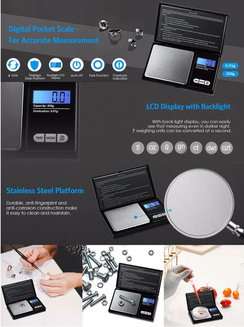 0.01g Jewelry Mini Stainless Steel Electronic Scale Digital Pocket Scale Gold Gram Balance Weight Scale Portable Pocket Scale