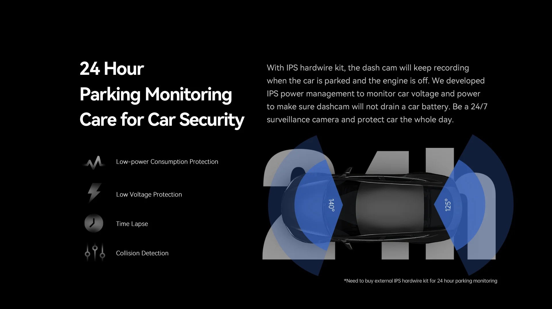 In real‑world tests, the 2.5K front camera delivers better detail than standard 1080p units, offering approximately double the pixel density for clearer license plates and distant signage. The 140° wide field of view provides a natural road perspective with reduced distortion, increasing reliable evidence capture in typical urban and highway scenarios. With loop recording, footage is continuously overwritten, ensuring fresh data while conserving memory. The system’s 512GB maximum memory capacity supports long events and extended parking monitoring when paired with the optional hardwire kit, making it suitable for around‑the‑clock protection. Realcube image technology enhances color accuracy and clarity, delivering more true‑to‑life footage even in challenging lighting.