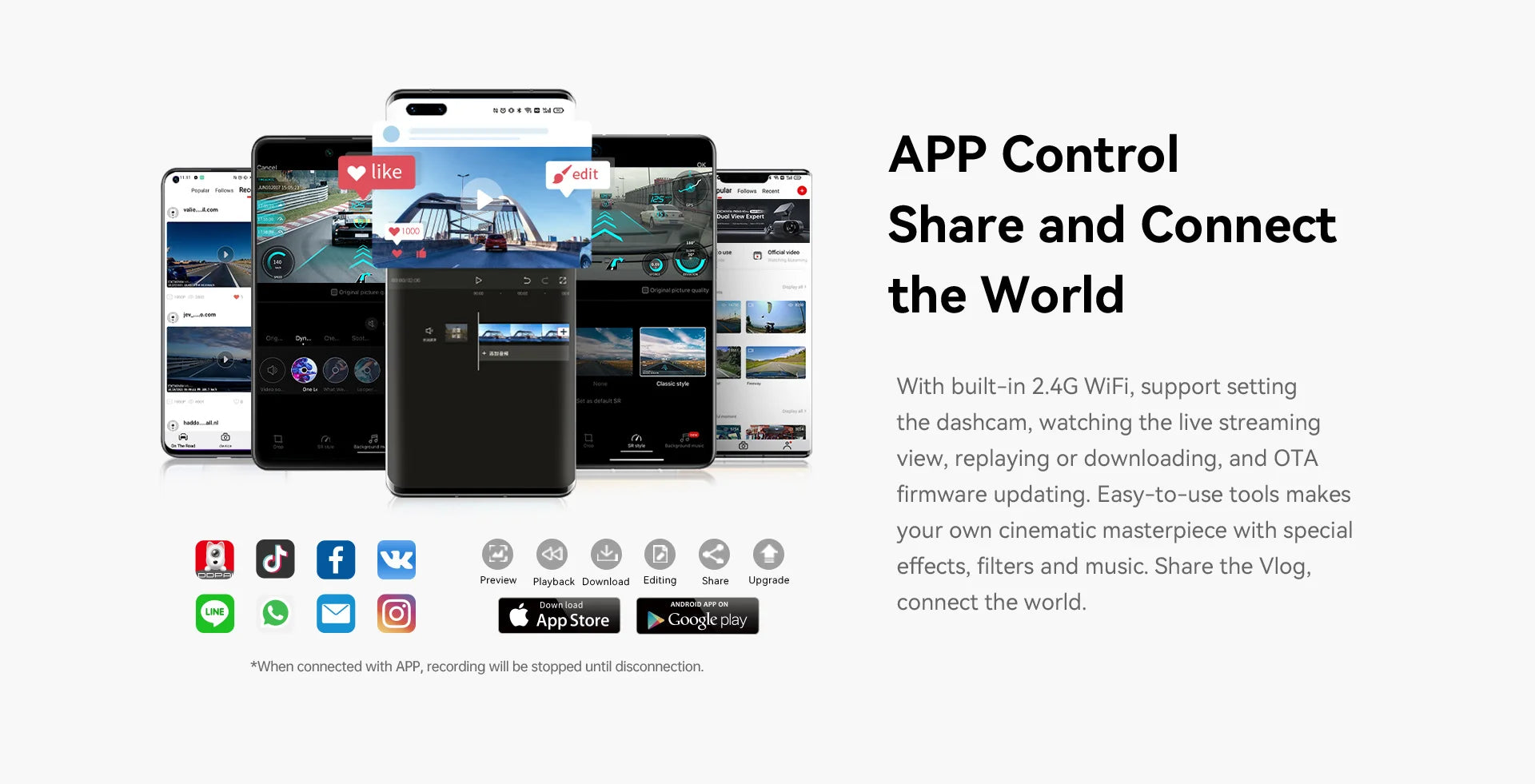 2.5K Dash Camera With WiFi Smart Connect And Recording