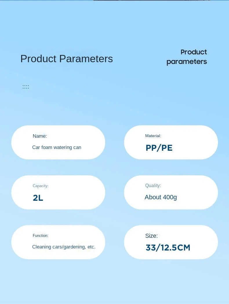 Upgrade your car care toolkit with this 2L Hand Pump Foam Sprayer and its three nozzle options. It delivers consistent foam coverage, portable convenience, and energy-free operation—a must-have for efficient, detail-oriented car washing. Add to cart today and experience professional-level foaming performance at home.