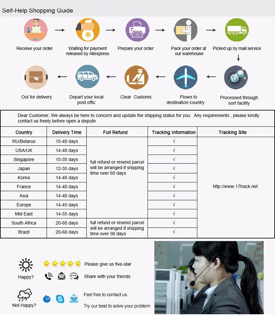 To keep the cost of our products low and pass the savings on to you, we ship a majority of our products directly from our warehouses located in USA, China, Germany, Russian Federation and European. Under usual circumstances, total delivery time is 9-21 days depending on your location (excluding processing times).