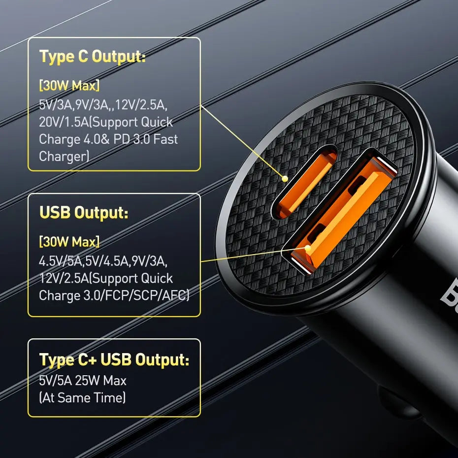 For anyone who values quick, flexible charging on the go, this 30W dual-port car charger delivers. It combines fast charging protocols, reliable safety protections, and a compact design into a single, practical accessory for modern vehicles. With support for PD 3.0 and QC 4.0 on the right connections, plus a discreet form factor that fits into tight spaces, it’s ready to power your devices on every journey. Don’t miss the chance to upgrade your car charging setup—add to cart now and charge smarter, faster, and safer on the road.