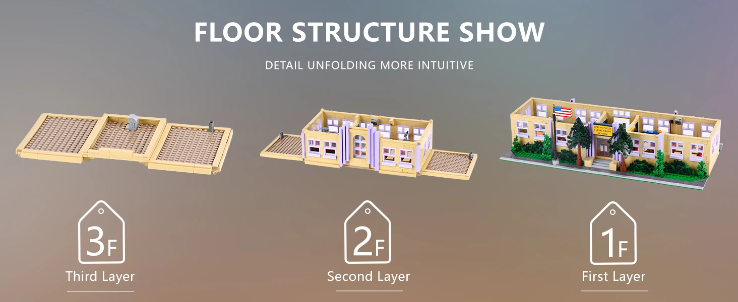 3500PCS Springfield Elementary School Building Blocks Idea Anime Street View Modular Architecture Brick Model Toy Christmas Gift