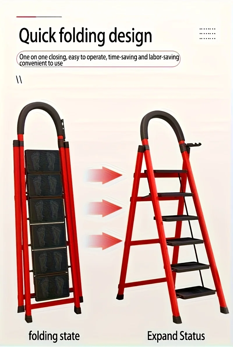 4-step ladder set: multifunctional foldable lightweight, wide-thick sturdy, safe handle + wide non-slip steps, for home/outdoor/