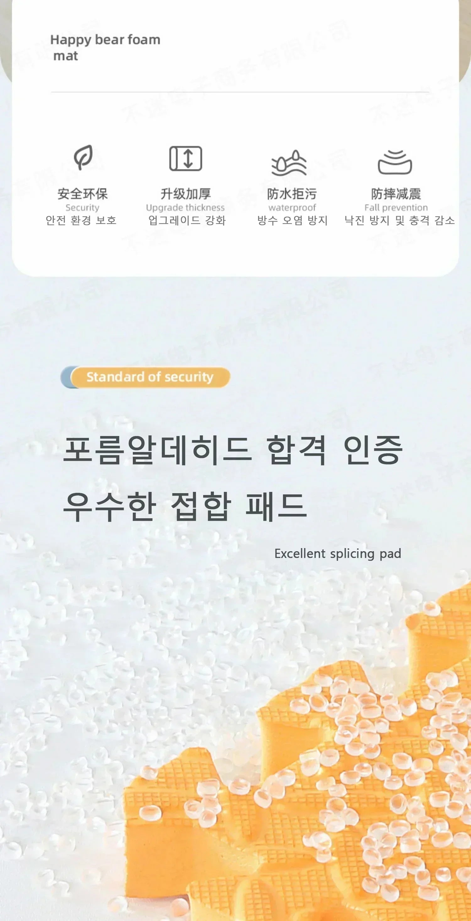 It is suitable for babies to learn crawling. The cushion is soft and comfortable, protecting the baby from harm, safe and odorless, tightly adhering to the skin without irritating it. It can be freely spliced, cut freely, non slip, and easy to store. After receiving it, it is recommended to clean it first and then dry it, as it can be used normally. (Can be used to wrap table corners and window edges after cutting)