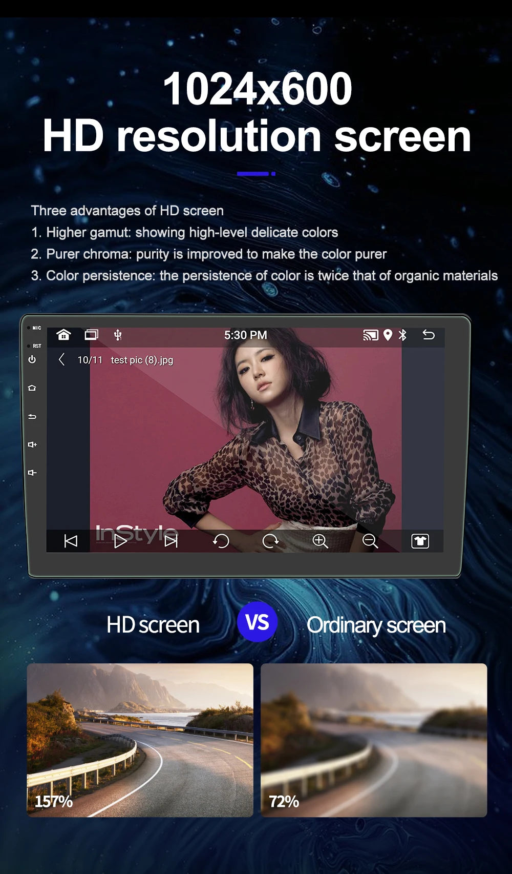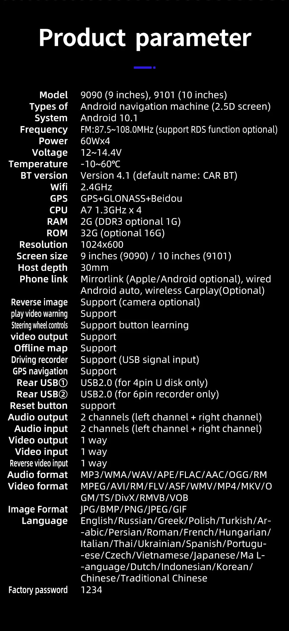 - Display: 7", 9", or 10" IPS capacitive touchscreen with 1024×600 resolution and support for HD 1080P video