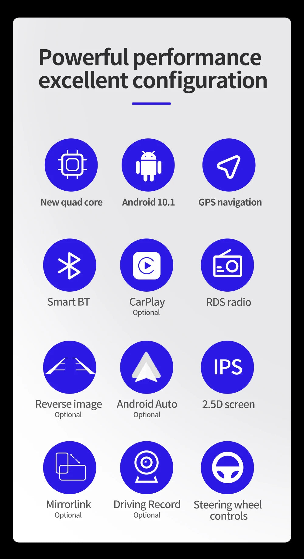 Upgrade your vehicle with a feature-rich Android Auto Car Stereo that brings modern connectivity, navigation, and multimedia to the dashboard. Available in 7, 9, or 10-inch IPS displays, this head unit delivers sharp 1024x600 images, vivid colors, and HD 1080P video playback for movies and camera feeds. The built-in GPS navigation keeps you on course with offline map support, so you never lose signal in remote areas. Powered by a 4-core processor running Android 11, the system delivers quick app launches, smooth navigation, and responsive touchscreen interactions. Enjoy seamless wireless CarPlay and Android Auto integration, allowing you to mirror your phone apps, maps, and music with minimal lag. The dual aspects of robust power (60W x 4) and advanced DSP with a 9-band graphic equalizer give you full control over audio, whether you prefer deep bass, crisp highs, or vocal clarity. Additional features like Bluetooth 5.0, built-in WiFi, a reversing camera input, and 30 preset FM stations round out a complete in-car entertainment and information hub. This universal fit unit is designed for easy installation in most vehicles and supports steering wheel controls for a safer, hands-free experience. With 64GB expansion capacity, you can store offline maps, offline music, and high-resolution videos for long trips. It’s a versatile upgrade that combines navigation, media, and smartphone integration into a single, easy-to-use display.