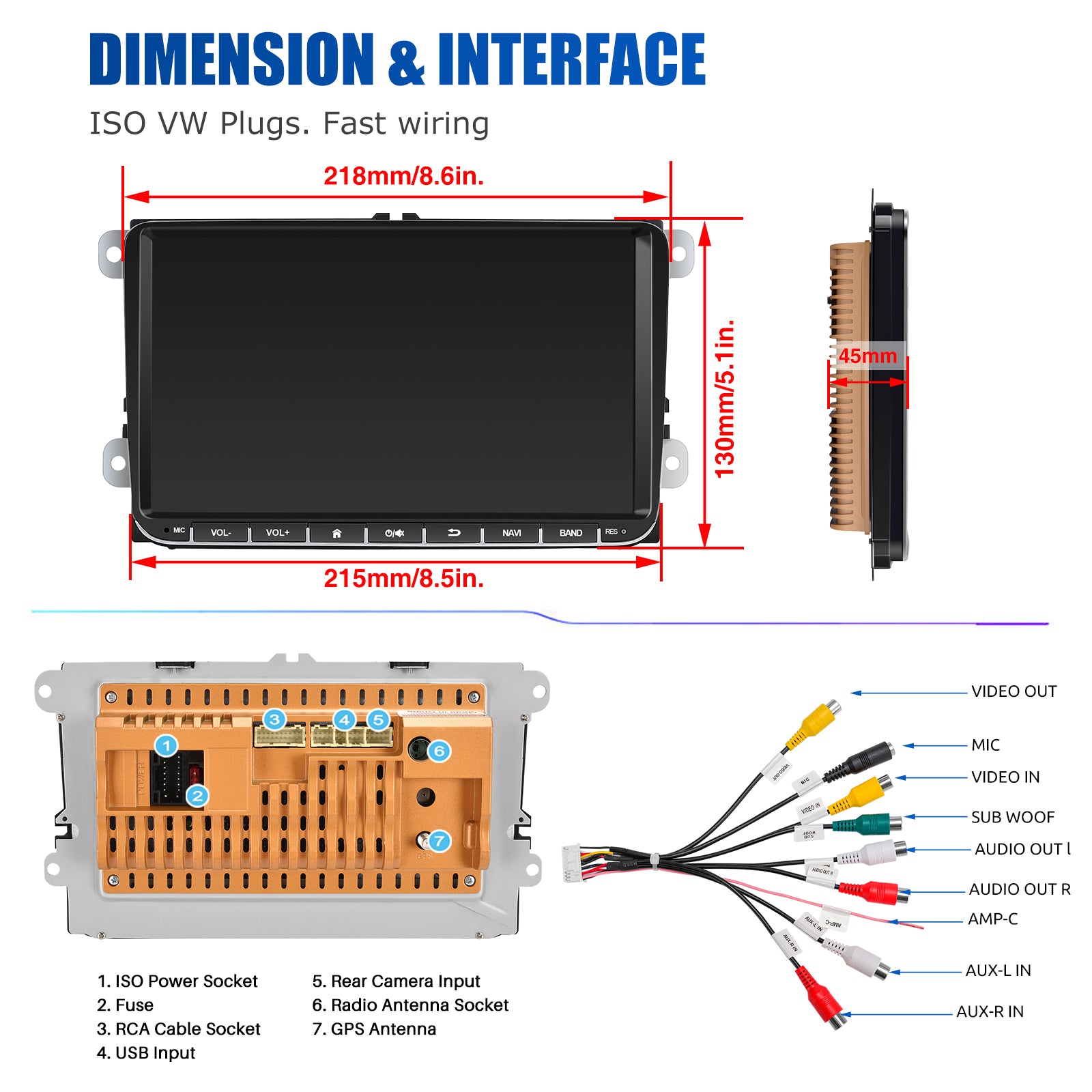 - Vehicle Integration: Can-Bus compatibility, steering wheel control, reverse signal input, and reading original vehicle data