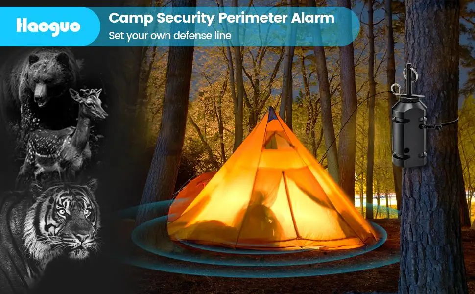 - BUILD YOUR SECURE PERIMETER: Camp security perimeter alarms are great companions for camping, hiking and house or farm protection. Prevent wild animals from invading your campsite and posing a threat to human life. Help you establish a security perimeter to effectively protect your personal and property safety.