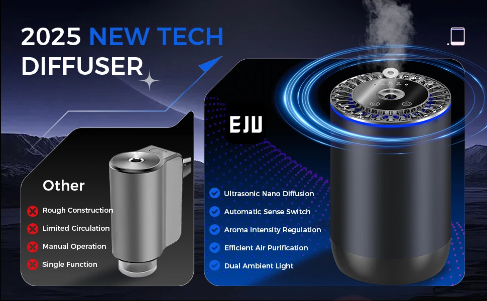 Car Aromatherapy Diffuser, Smart Starry Sky Ambient Light, 3 Modes, Touch-Controlled Color Adjustment, Essential Oil Addable