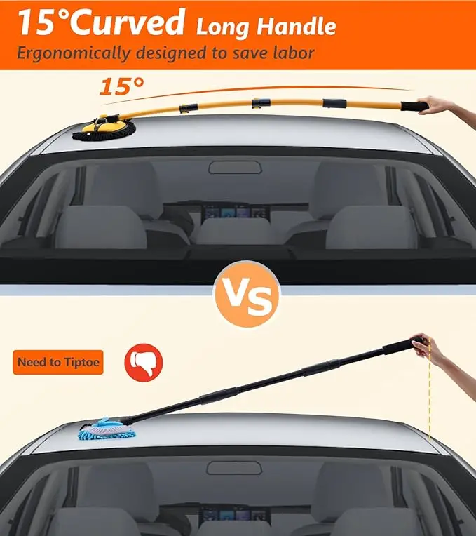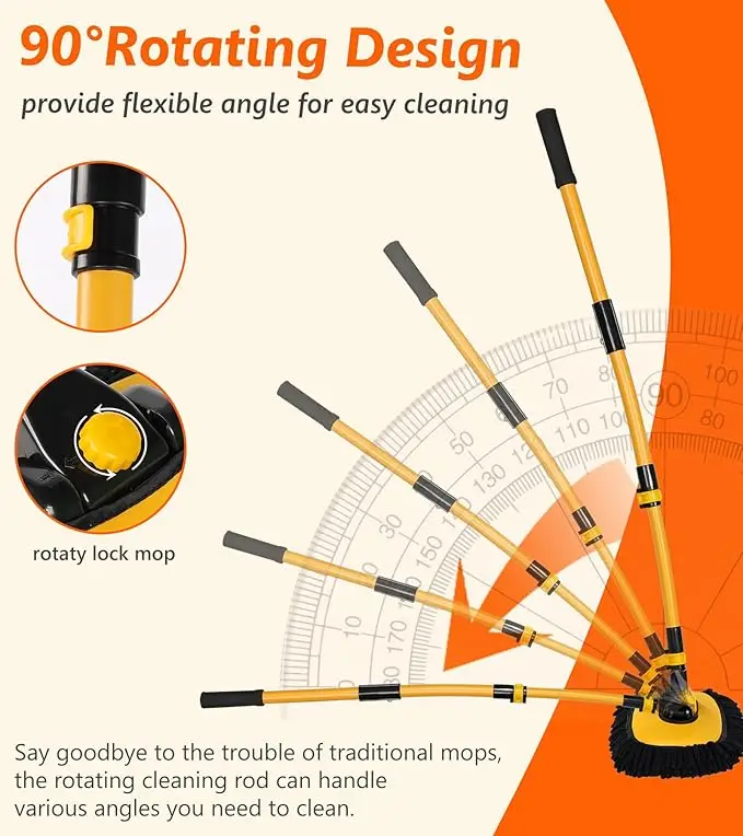 Car Cleaning Brush, Telescopic Long Handle Cleaning Mop, Auto Accessories Microfiber Adjustable Length Cleaning Brush, Yellow.