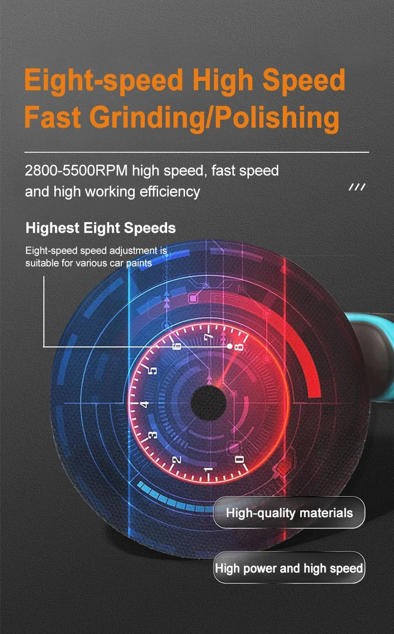 Experience professional-grade polishing wherever you go with this cordless car polisher. Powered by a compact 12V, 5A motor and eight adjustable speeds, it delivers fast, high-quality results on automotive surfaces while keeping noise to a minimum. Its 0.9 cm eccentrically driven polishing disc provides an irregular rotation path that buffs evenly without risking delicate paint finishes. Designed for versatility, it shines on car detailing, rust removal, waxing, floor waxing, window cleaning, wood finishing, and more, making it a true all-in-one tool for home and workshop use. The ergonomic, anti-vibration handle and advanced heat-dissipation system ensure comfort and performance during extended sessions, even in challenging environments.