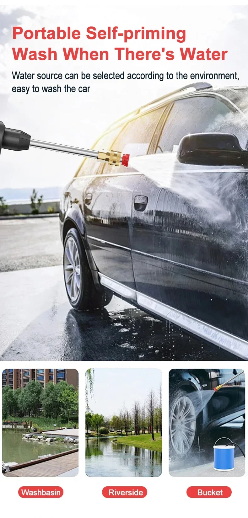 Water source can be selected according to the environment,easy to wash the car
