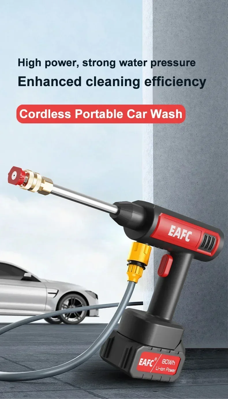 Cordless Car Wash Gun 60Bar High Pressure Washing Guns High Pressure Washer Spray Water Gun Portable Washing Machine for Garden