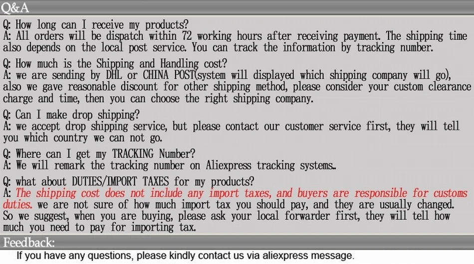 We offer worldwide free and no customs fees or duties, ensuring you receive your order quickly and at no additional cost.