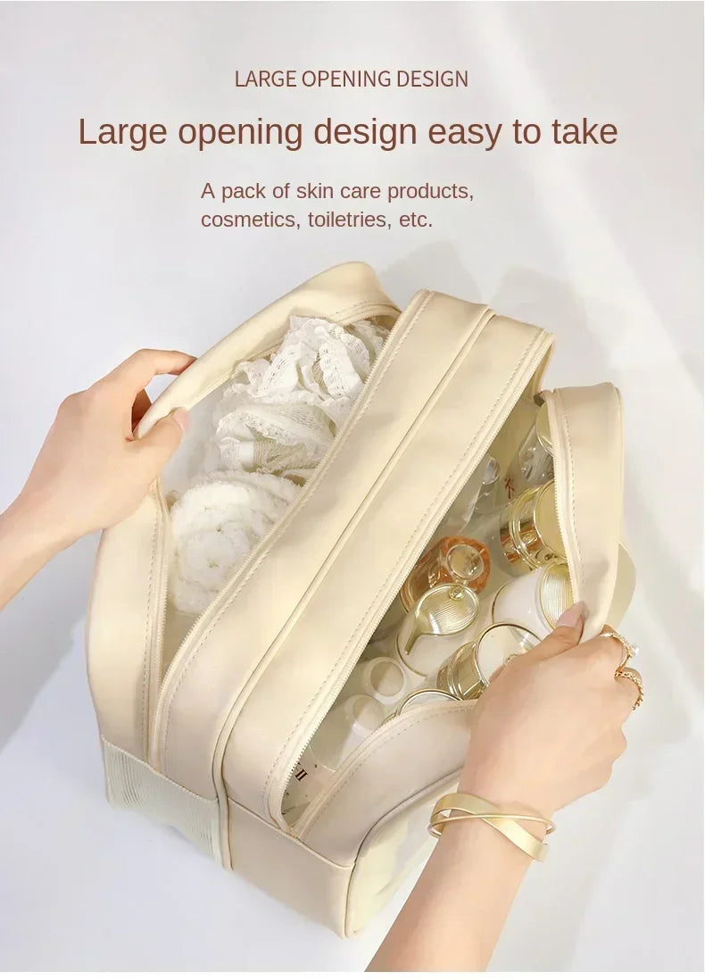 Upgrade your travel kit today with this reliable Dry Wet Separation Toiletry Bag. Its durable PU build, secure zipper, and thoughtful two-compartment, double-layer partition deliver leak-free, mess-free packing every trip. If you want organized cosmetics and essentials without bulk or spills, this bag is a must-have. Add to cart now and enjoy organized, hassle-free packing wherever you go.