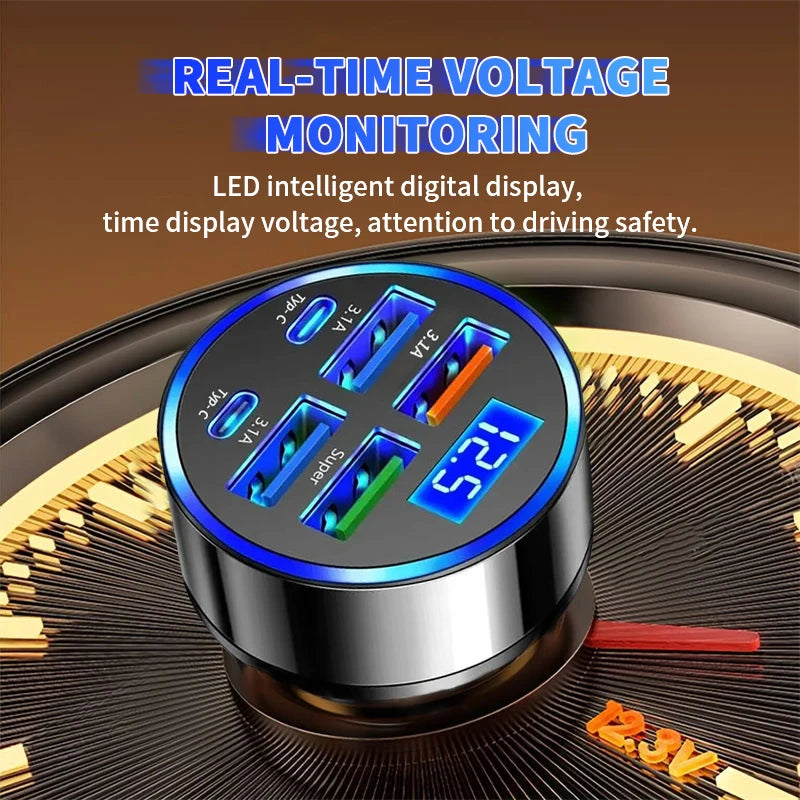 The 120W total power endows this charger with genuine multi‑device versatility. Two USB‑C ports can negotiate up to a combined 120W, delivering as much as ~60W per port when used in tandem, while four USB‑A ports share the remaining capacity as devices demand it. The inclusion of PD, QC, and Vooc profiles means compatible devices negotiate the highest safe wattage automatically, reducing wait times for peak‑performance laptops and power‑hungry tablets. Real‑time display of voltage and wattage provides actionable data for smarter charging decisions on the road, helping you manage battery health and minimize heat generation during long drives.