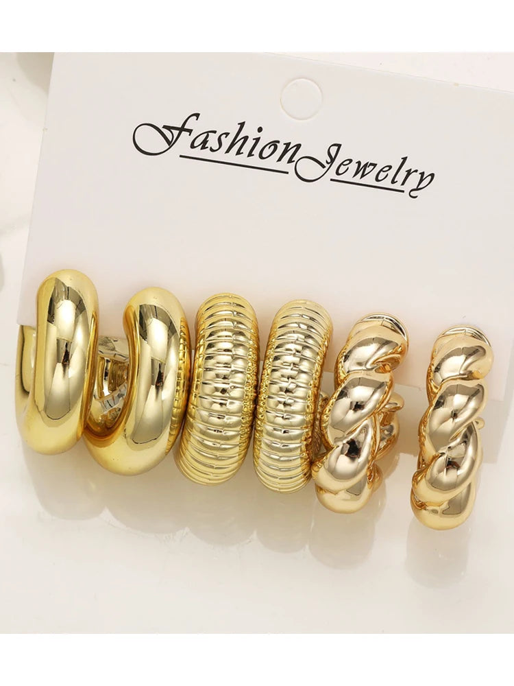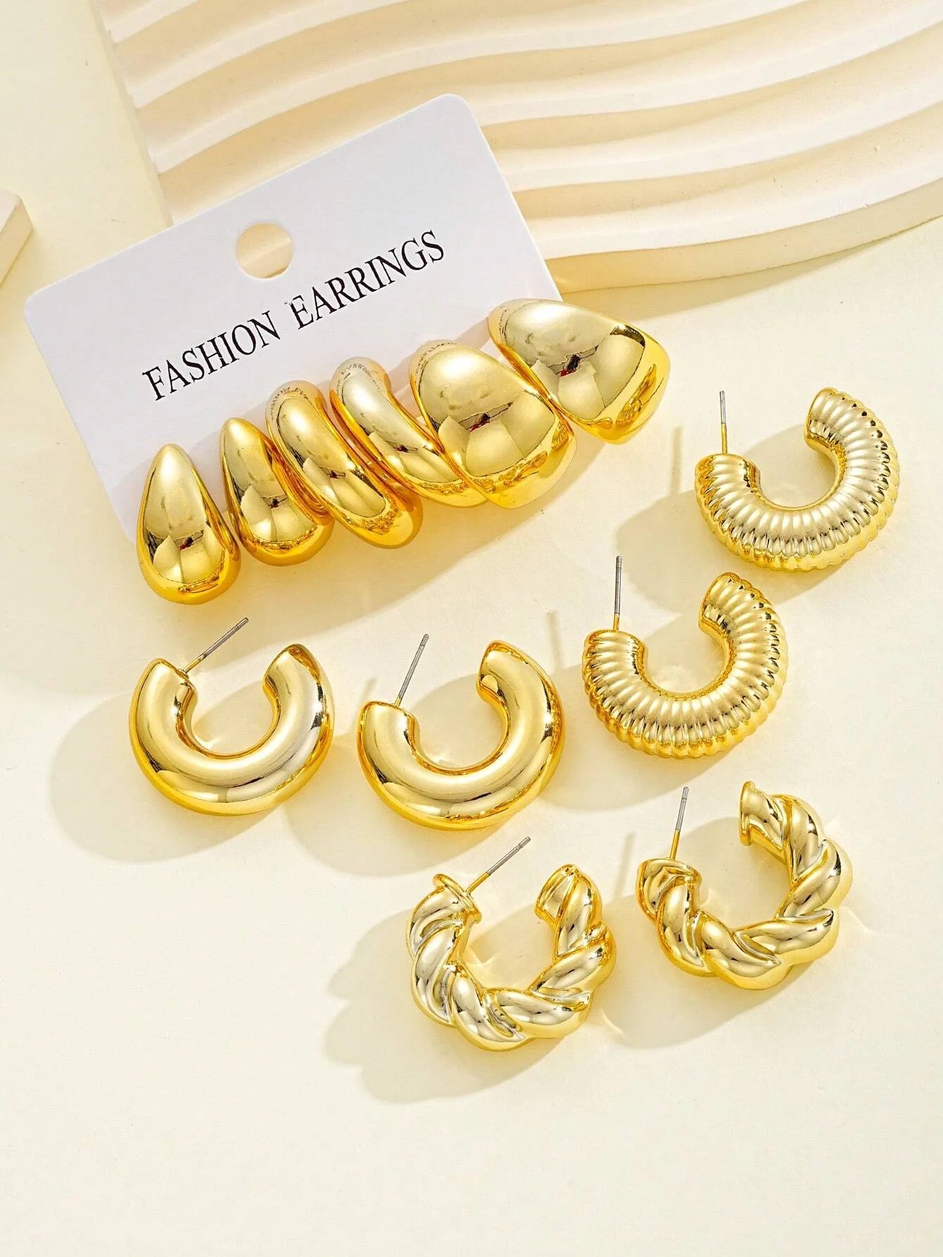 Gold Drop Earrings Set 12Pc Twist C Shape Tear Drop