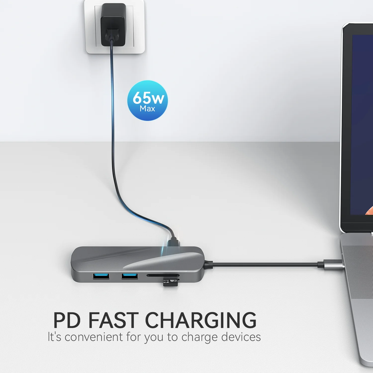KOOTION USB C Hub 6-in-1 USB-C Hub for Laptop with 4K HDMI Adapter, 2 x USB 3.0 Ports, SD/TF Card Reader, PD Charging Port,