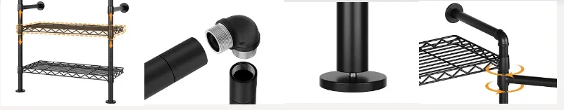 L4 Wall Mounted Industrial Pipe Clothes Rack, Closet Organizer System with Rods Expandable, Clothing Rack, Corner Garment Rack