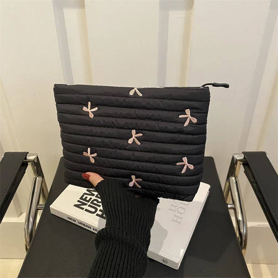 Large Capacity Embroidered Zippered Makeup Bag With Bow