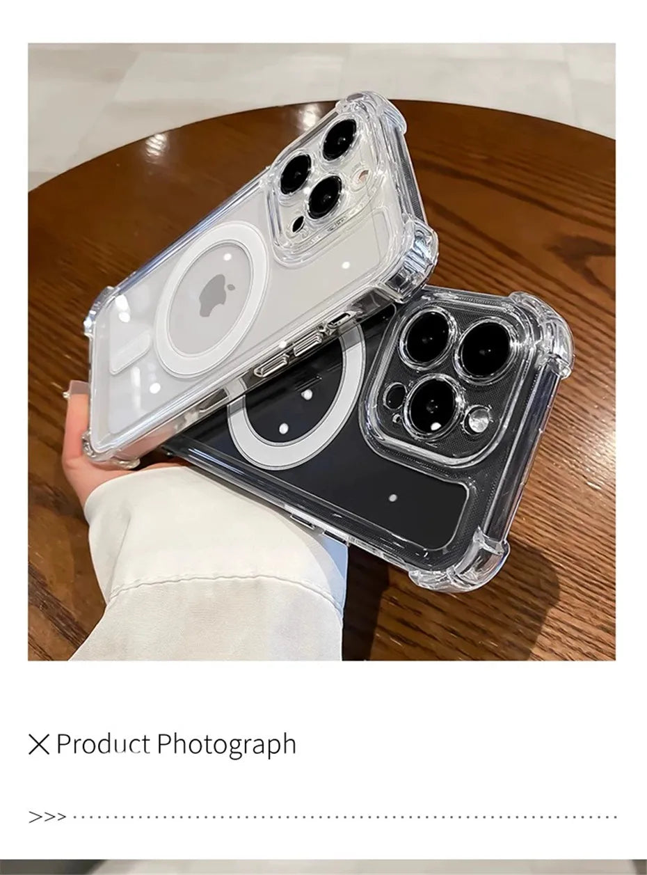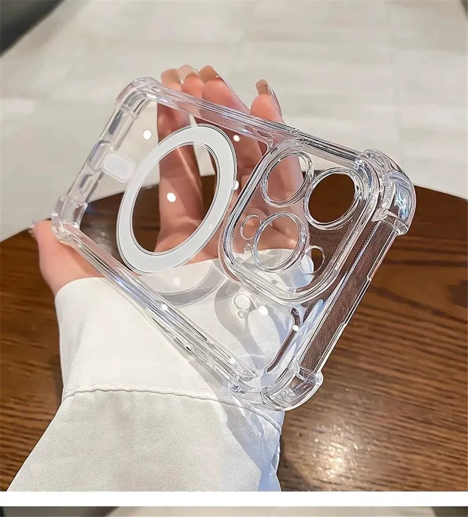 Luxury Wireless Charge Magsafe Transparent Case For iPhone 15 16 14 13 17 12 Pro Max Plus Magnetic Shockproof Soft Bumper Cover