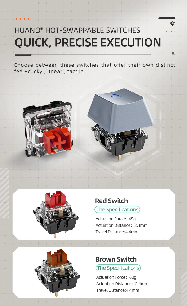 - Hot-swappable: 3-pin hot-swappable switches for easy customization