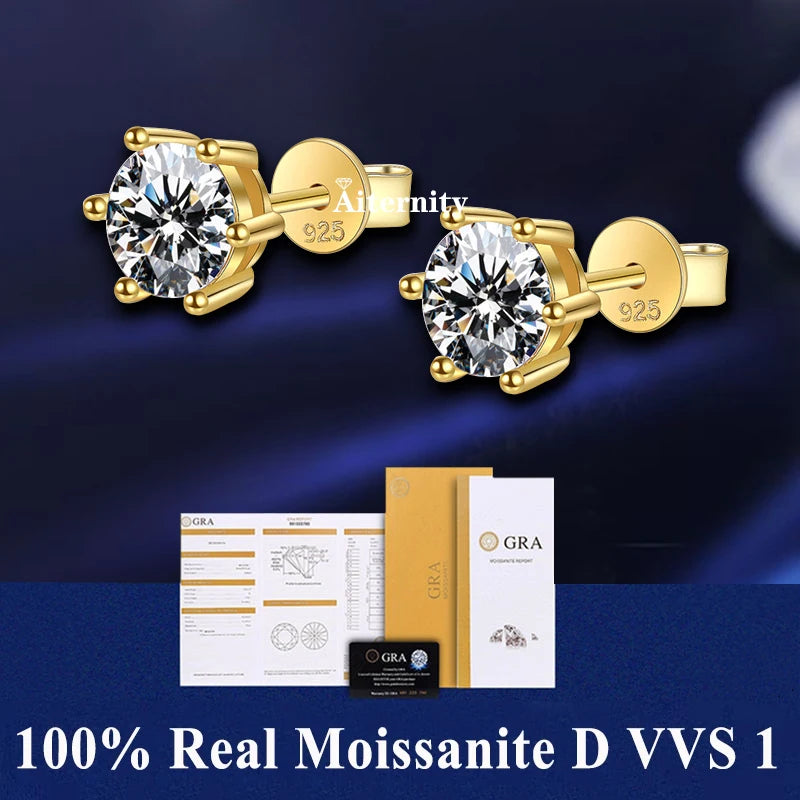 Moissanite Stud Earrings 18K Plated 2 GRA Certificates 925