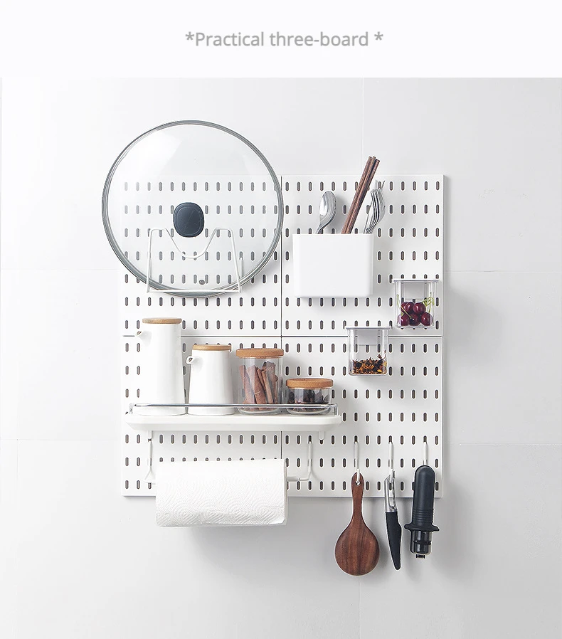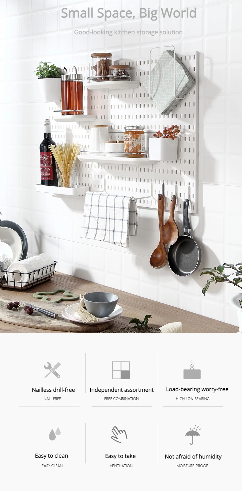 New DIY Pegboard Accessories Hanging Shelf Storage Hooks Wall Organizer No Punching Crafts Organization For Garage Kitchen Room