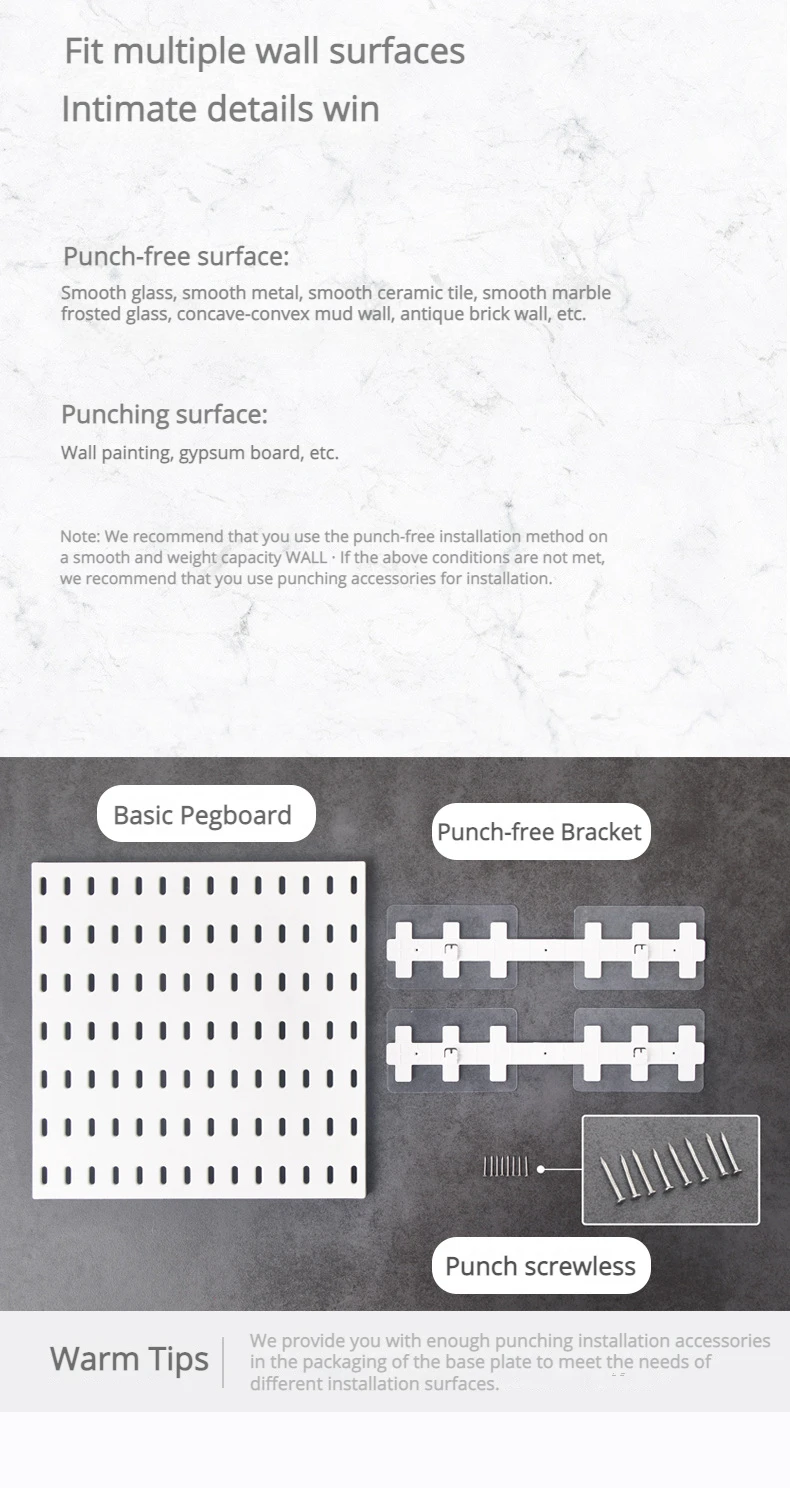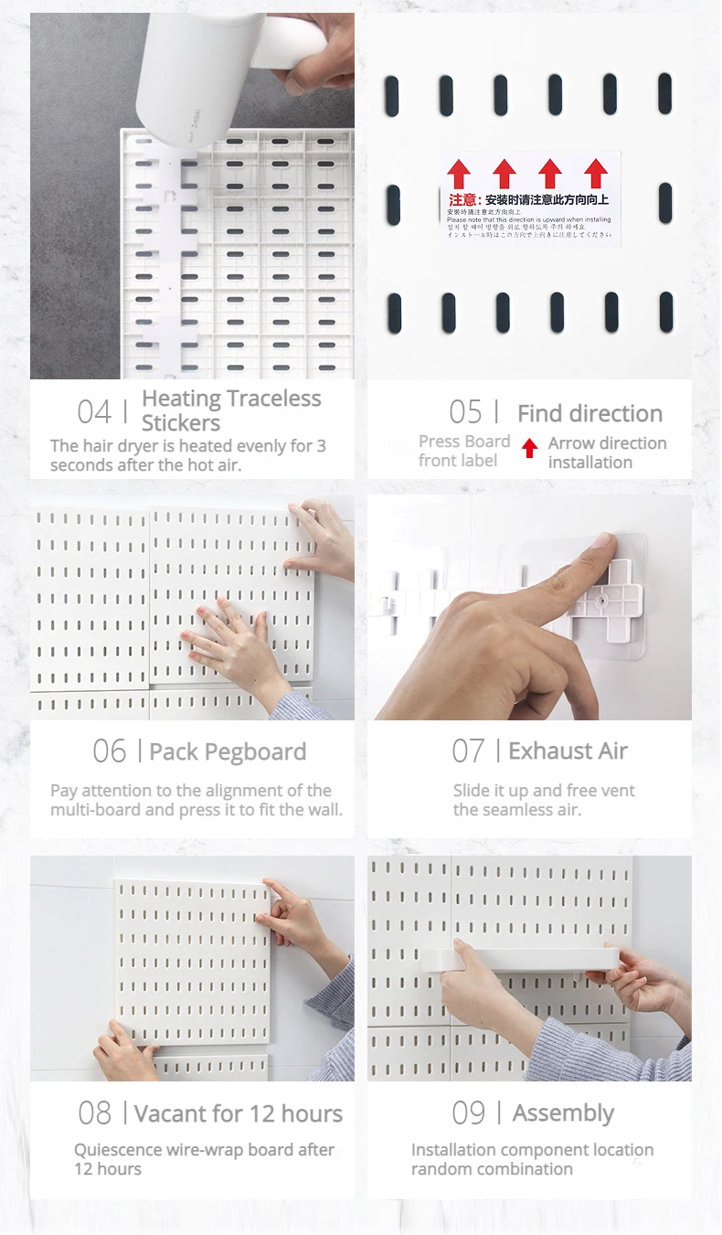 *Features: Items are sorted. Neat and fresh. It can be expanded seamlessly on multiple boards. Think as big as you want. Using high-quality viscose,strong bearing capacity,strong and durable. Hole-free installation. Choose from creative combinations,hooks,storage racks,and more. All products are harmless to the human body,environmentally friendly,healthy,pollution-free,and zero-emission.