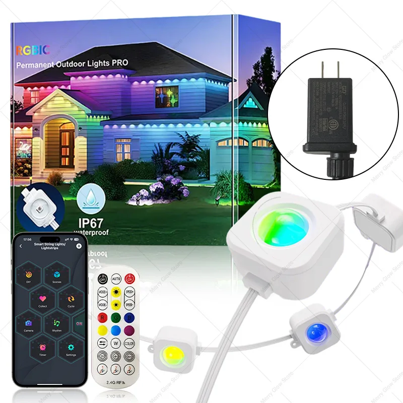 Permanent Outdoor String Lights 60M 120LEDs Smart RGBIC LED Lights IP67 Waterproof Full House Eaves Lights Halloween Decor Alexa