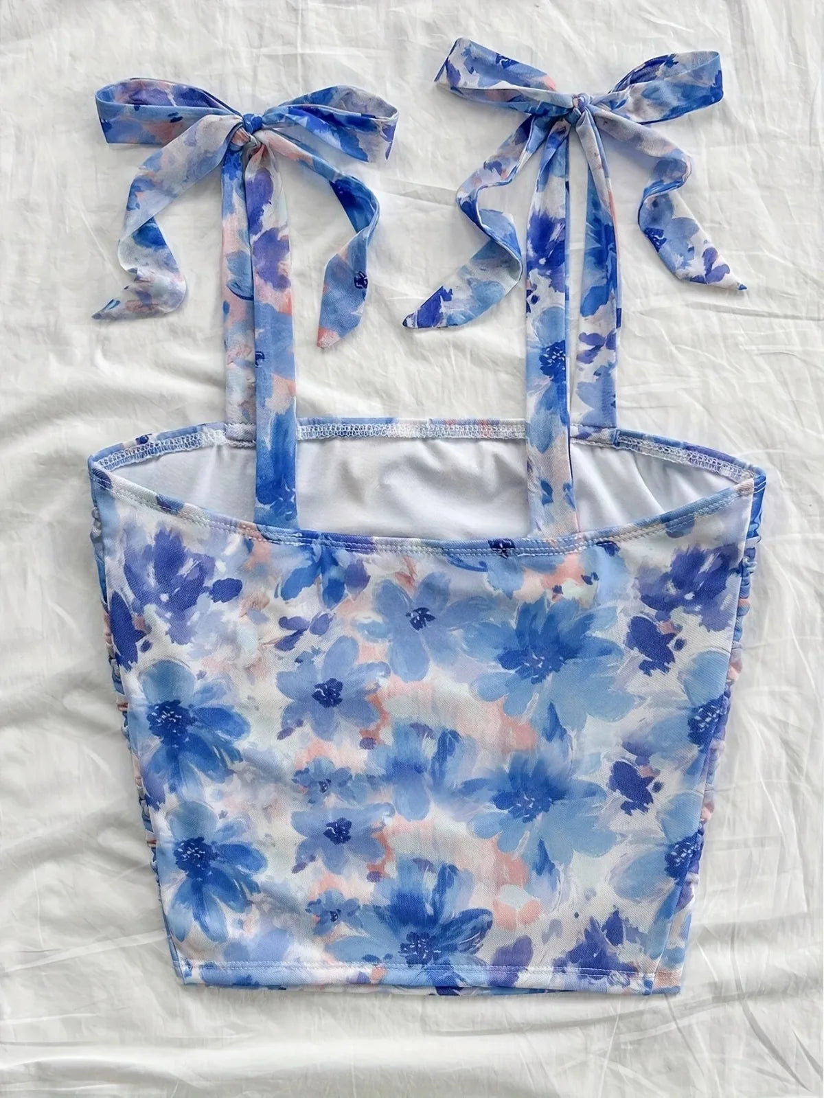 Pink Backless Ruched Tie Shoulder Slim Fit Crop Top Women