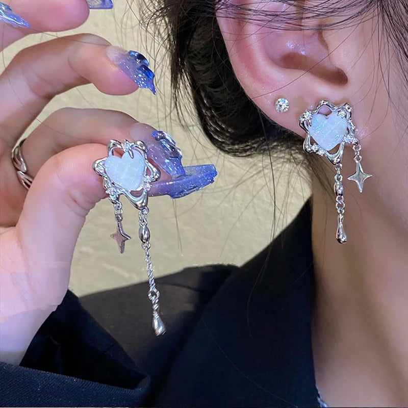Pink Heart Star Tassel Earrings Kpop Style Chic Jewelry