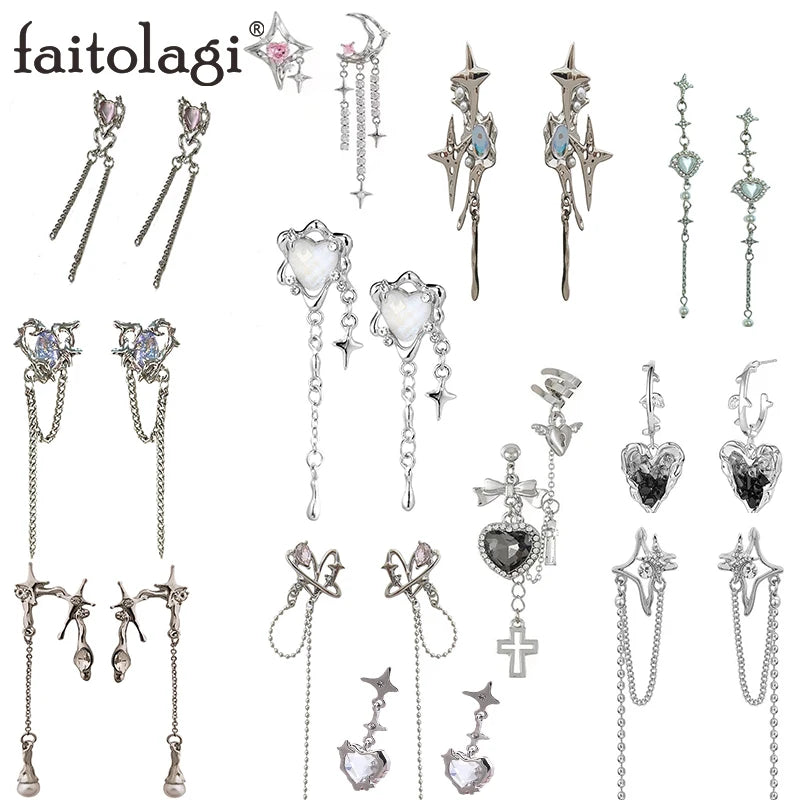 Y2K Pink Heart Star Tassel Earrings blend retro charm with contemporary sparkle, delivering standout performance for daily wear and special occasions. Crafted from durable zinc alloy with brilliant crystal accents, they provide lasting shine, a secure push-back backing, and a versatile silhouette that suits casual denim, office wear, formal dresses, and iconic egirl aesthetics within Kpop jewelry trends.