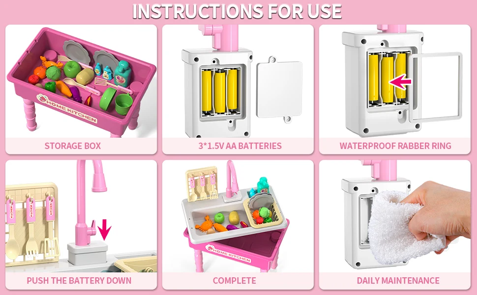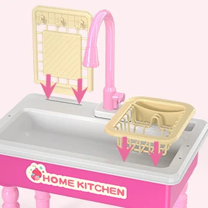 Play Kitchen Sink Toy with Running Water, Dishwasher and Upgraded Automatic Water Cycle System