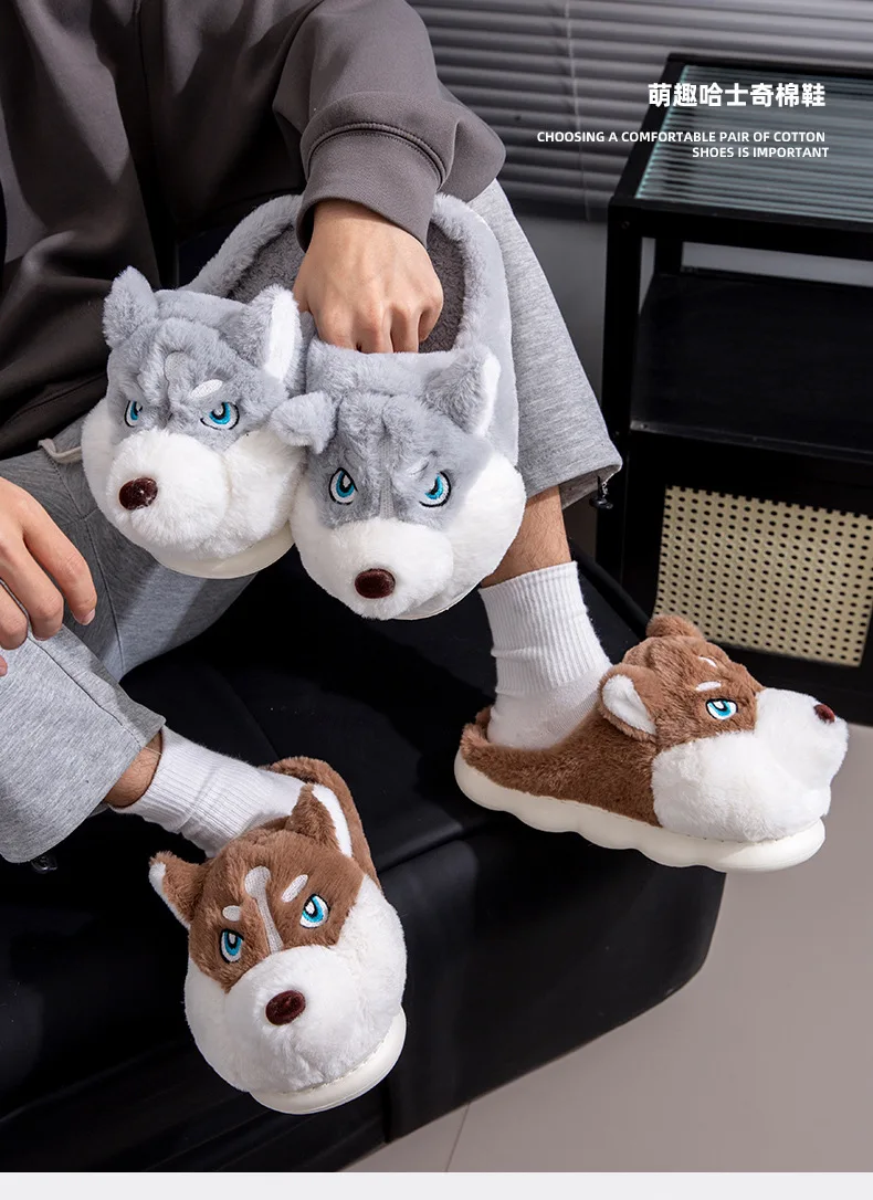Plus Size 50 Indoor Fluffy Slippers For Women Men Winter Warm Shoes Cute Cartoon Dog Light Weight Couples Home Floor Slipper