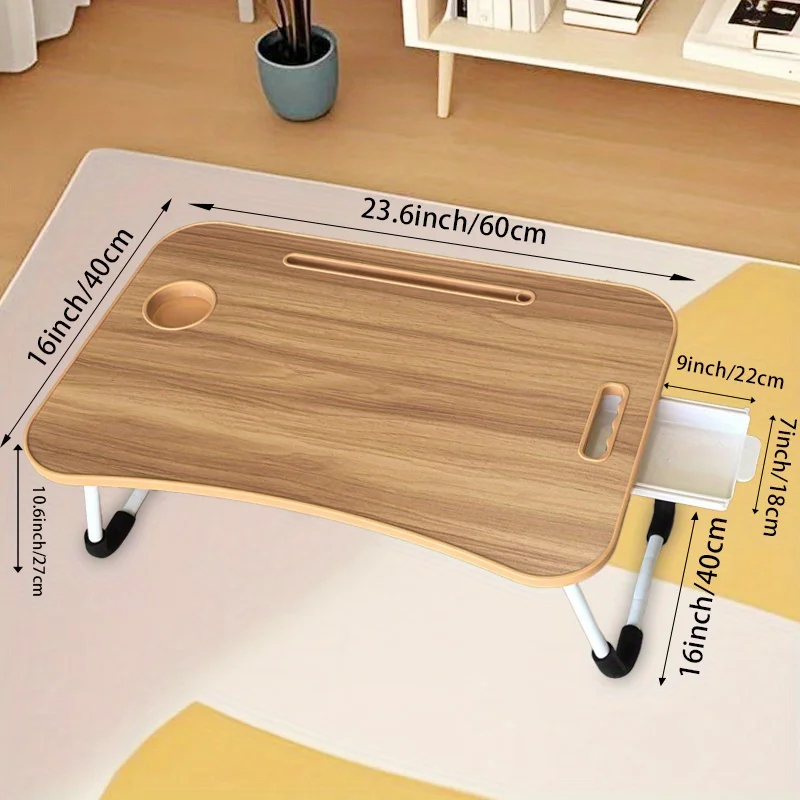 Portable Laptop Bed Desk - Foldable Table Computer Desk - With Cup Holder and Drawer - Suitable for Use on Beds Sofas or Floors