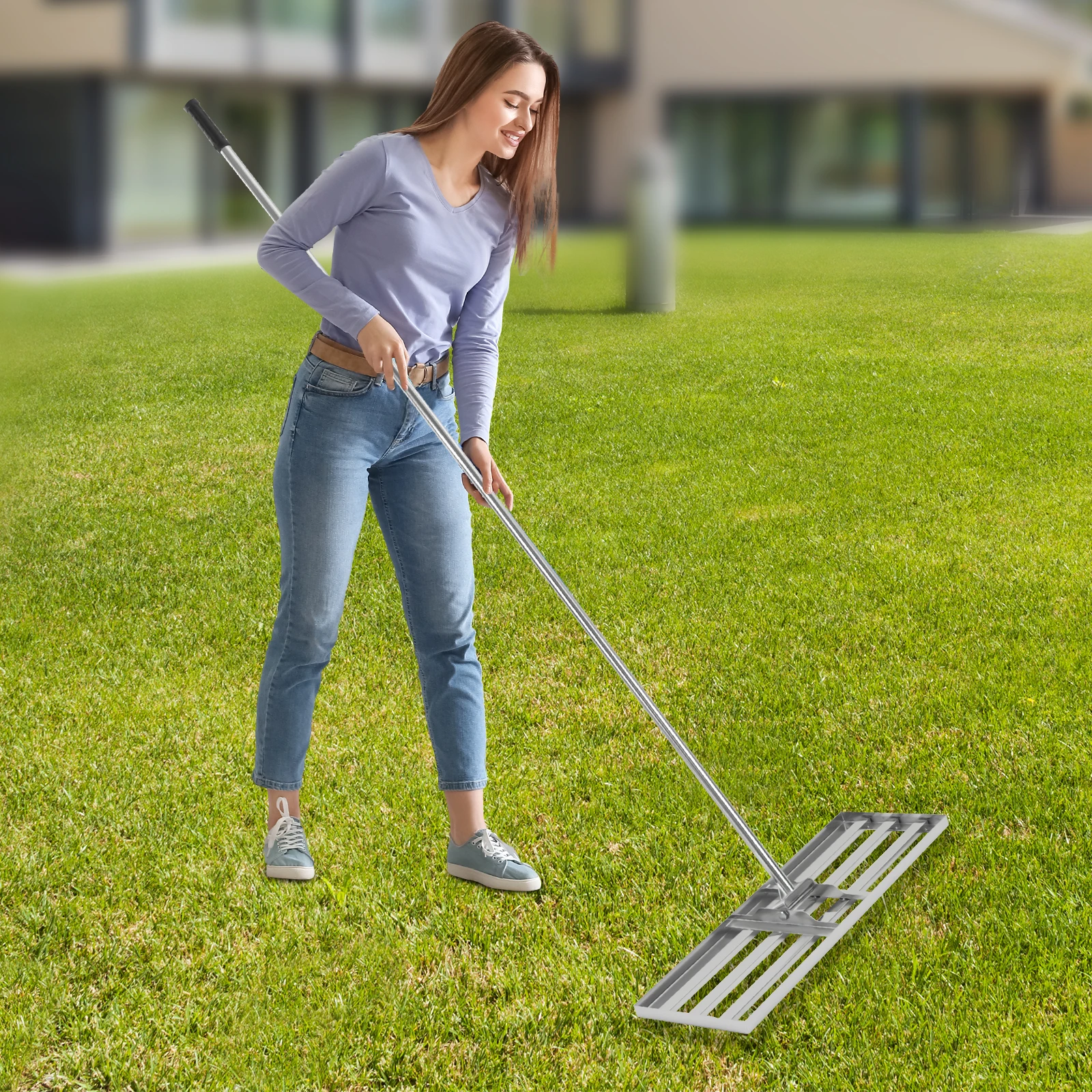 A well-organized and green lawn can instantly brighten up your day every morning in the early light. This lawn leveling rake is your secret weapon for a fantastic yard! Its lightweight body with an ergonomic handle makes gardening a pleasure rather than a burden. It helps to groom the turf for greener, more vibrant grass, making it the ideal companion for your long-term lawn management.