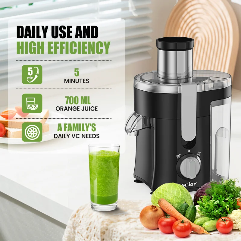 Sejoy Compact Fruits Juicer,Juice Extractor Machine Multiple Safety Features Operation Centrifugal Extractor Speed Adjustable