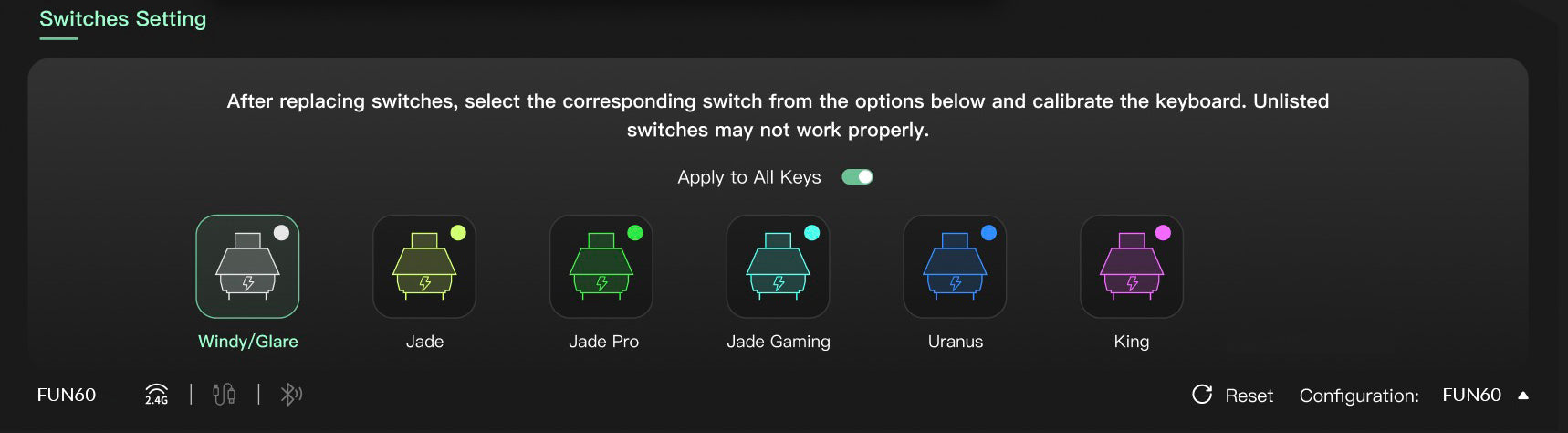 - Backlight: ARGB lighting on FUN60 PRO, FUN60 MAX, and FUN60 ULTRA variants
