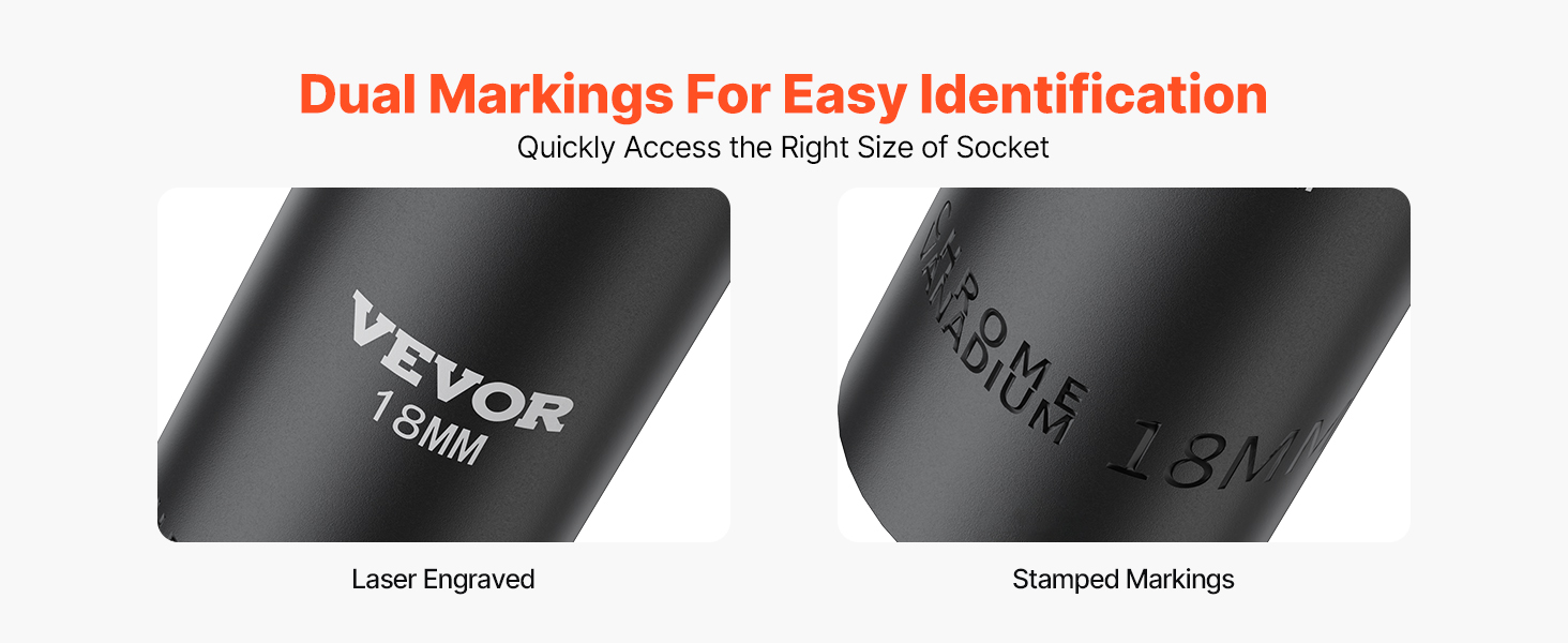 Clear Size Markings: The wear-resistant size markings on each impact driver socket are meticulously laser-etched and rolled, ensuring clear and precise identification even in low light conditions