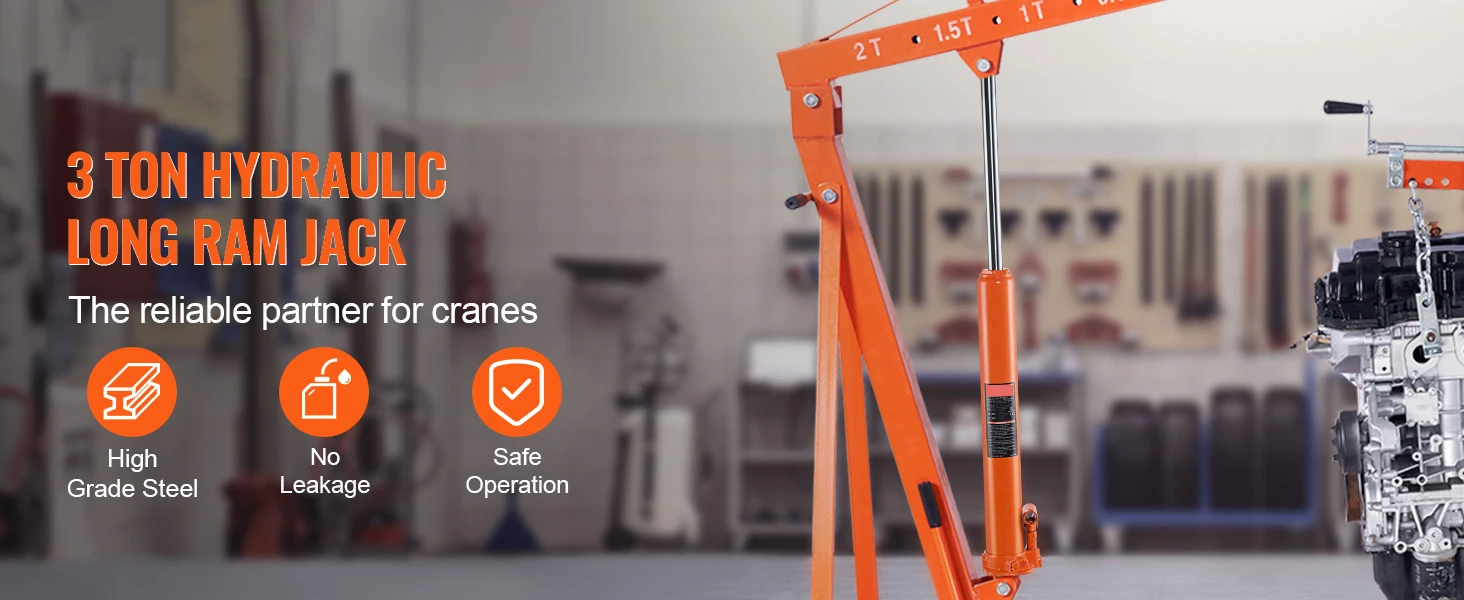 Built to Last: Crafted from durable #45 steel with a hard chrome-plated surface, the engine hoist jack 's core components ensure wear resistance. The large-diameter hydraulic cylinder reduces oil pressure requirements, minimizing wear and extending the long ram jack's lifespan.