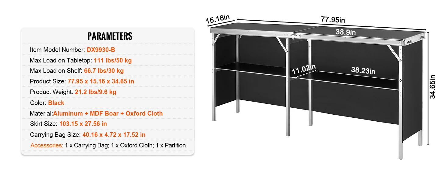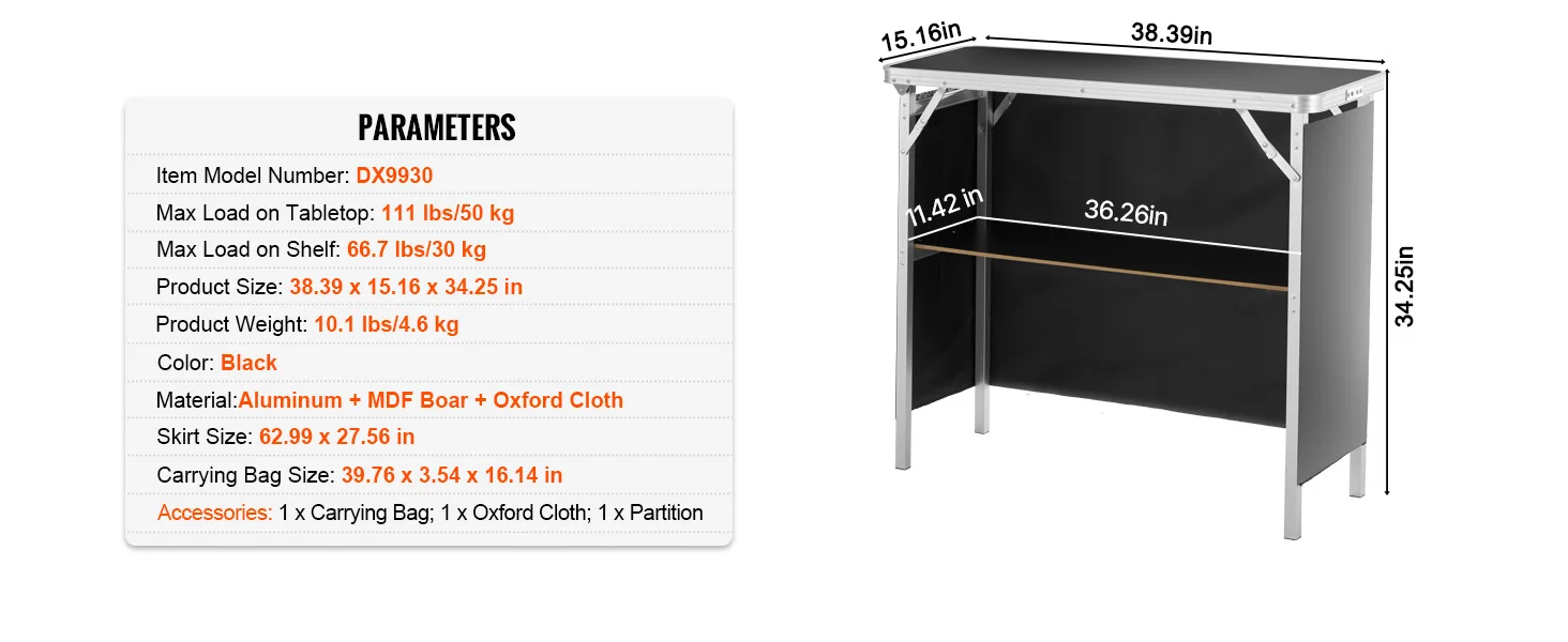 Lightweight and Portable: Weighing just 10.1 pounds, our display exhibition counter is a breeze to carry. It comes with a convenient carrying bag, making it a cinch to transport and set up. Whether you're at a business expo or a backyard party, setting up is hassle-free.