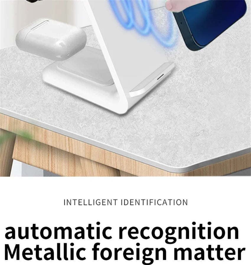 Upgrade your charging setup with this versatile 3‑in‑1 wireless charger stand and enjoy a cleaner desk, faster power delivery, and proven safety features. Its intelligent design keeps your phone, smartwatch, and earbuds ready to go without clutter or swapping accessories. Ready to declutter and stay powered up? Shop now and experience effortless, all‑in‑one charging today.