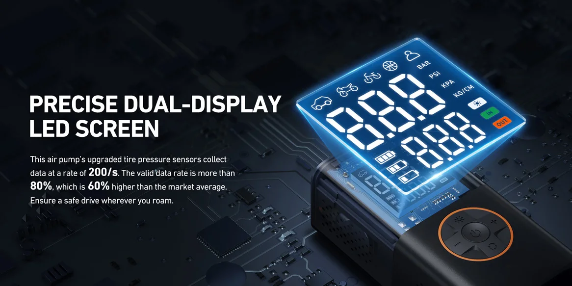 【5 Smart Modes & Auto Shut Off】:It offers 4 preset inflation modes (bicycles, motorcycles, cars, and balls). Once the preset pressure value is reached, the air pump automatically stops. The fifth custom mode allows you to set pressure values based on the inflation object to meet various inflation needs