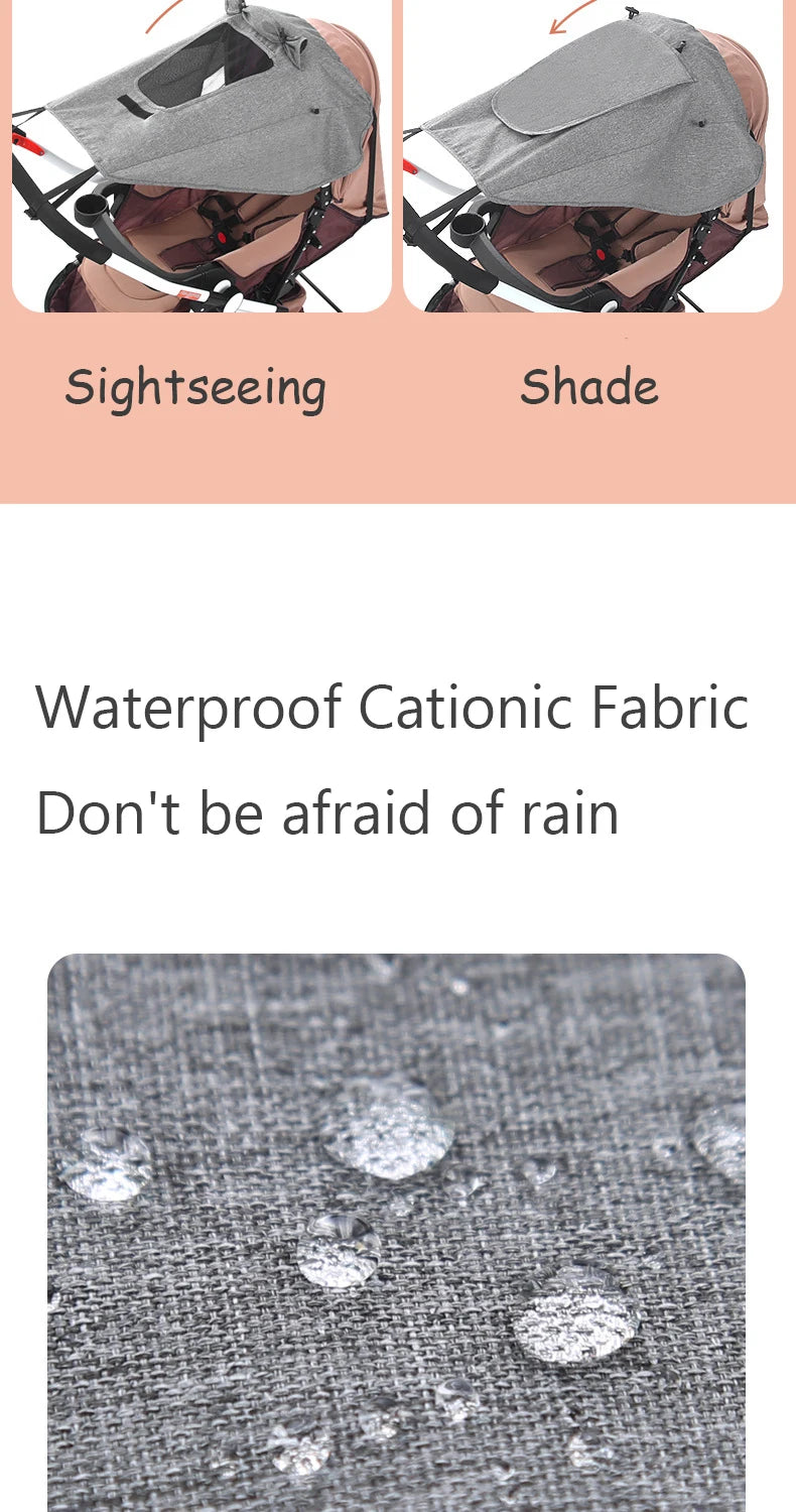 2.Stroller Sunshade with a perspective window design, can always pay attention to your baby.