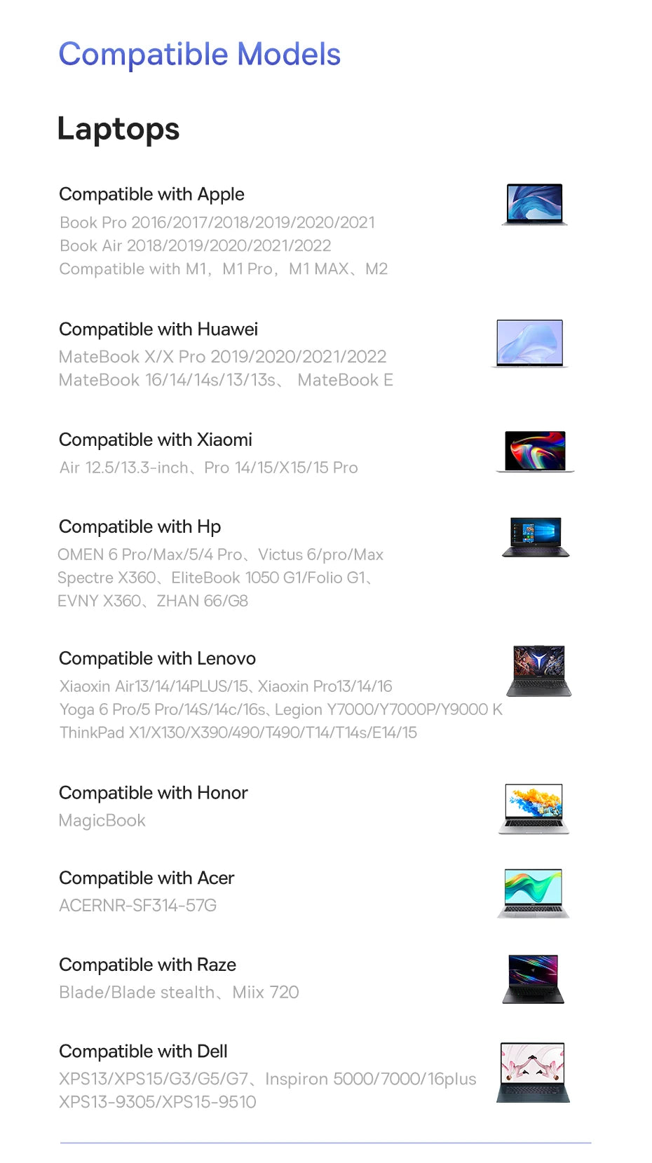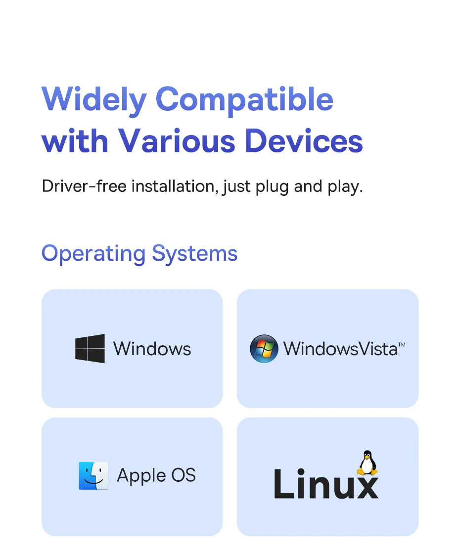 - Power Delivery: Type-C PD supports up to 100W to charge laptops, tablets, and other devices while in use.