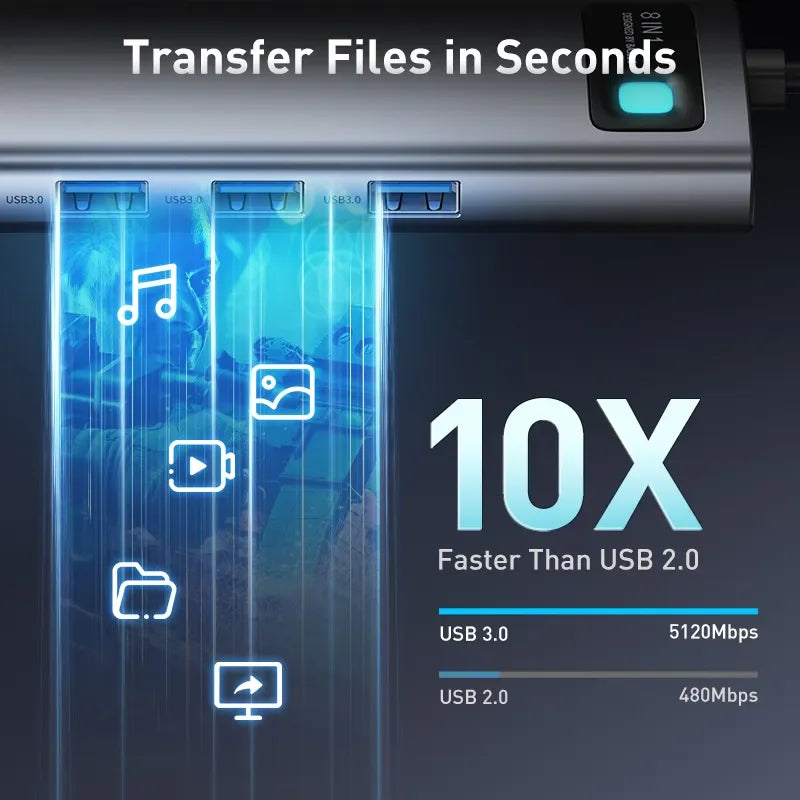 For professionals and power users who demand a clean, capable expansion solution, this 8-port USB-C hub is a must-have. It combines 4K@60Hz display support, fast USB 3.0 data transfer, gigabit Ethernet, and robust 100W charging in one compact, durable package. Elevate your workstation today—expand functionality, enhance productivity, and keep devices powered with a single, reliable hub.