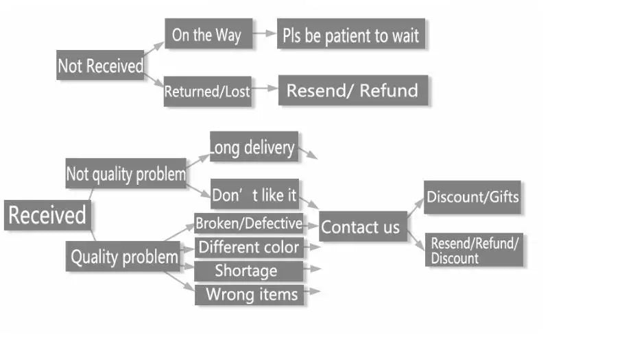 If you receive your package and find that some items are lost or damaged in transit, rest assured that we will promptly issue an immediate resend for those items.