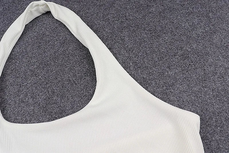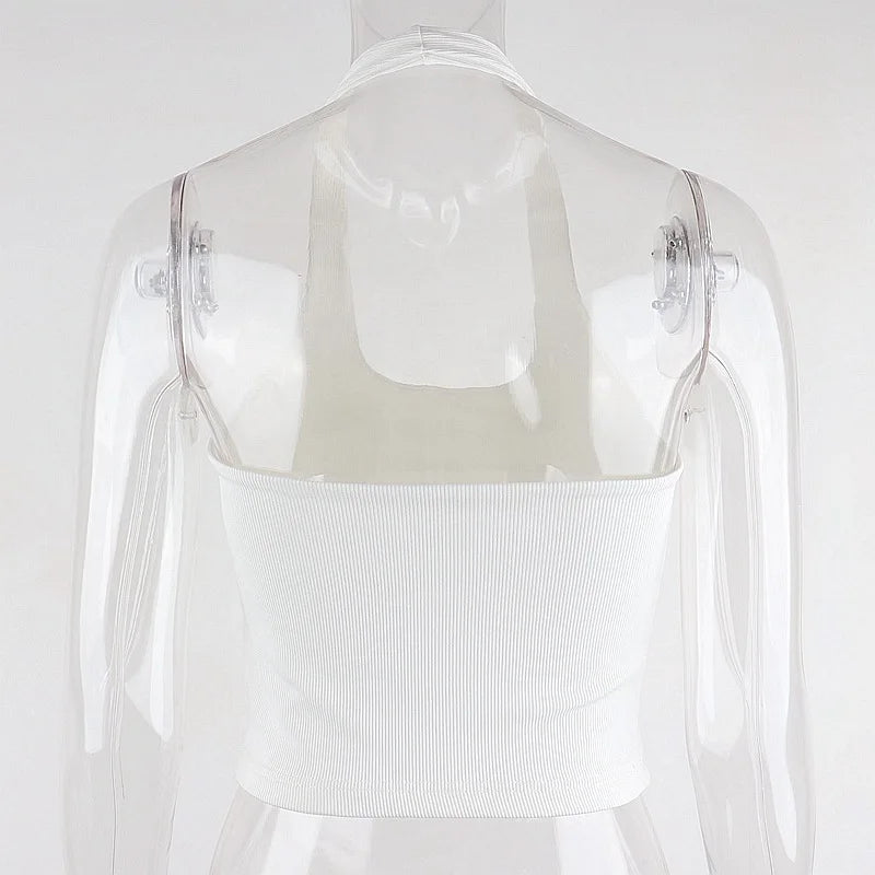 White Halter Backless Tank Top Women Knit Cropped DF6009